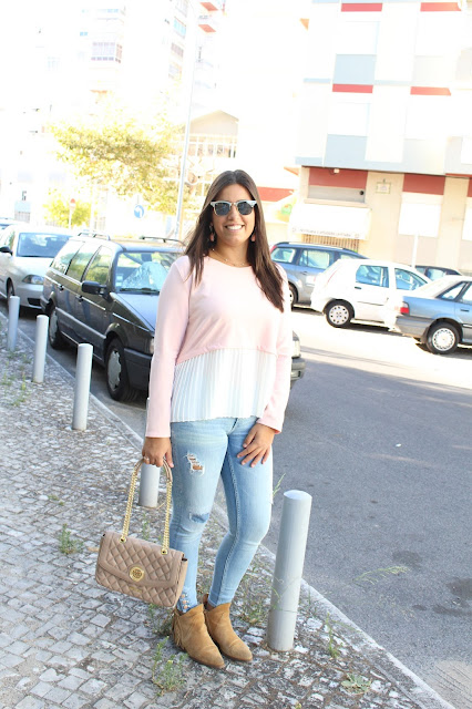 Hoje, em especial, para dar as boas-vindas ao Outono (talvez a minha estação preferida no ano). Sendo que Setembro é o meu Janeiro, mas em bom! Tenho pena que nas fotos não dê para ver o tom da blusa, porque é um rosa mesmo querido. Mas com pouco tempo e sem a melhor luz, não se arranjaram milagres!